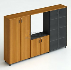 Офисный шкаф комбинированный для документов 250/1 ДСП Тик №41052 - столешница: дсп 25 мм, покрытие: слоистый пластик 0,4 мм, стекло: тонированное.